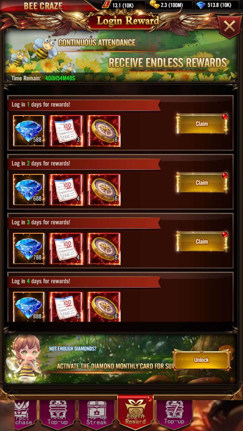 Accumulated Recharge: Reach the accumulated recharge amount to receive valuable and attractive rewards.