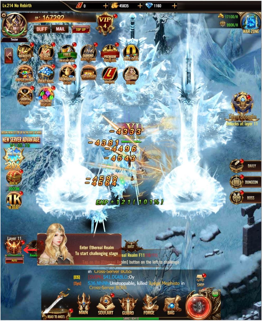 During your adventure on the Magic Universe continent, you will explore the Ethereal Realms system, with numerous attractive rewards. The income gained from each hour of idle play includes Gold and Experience.