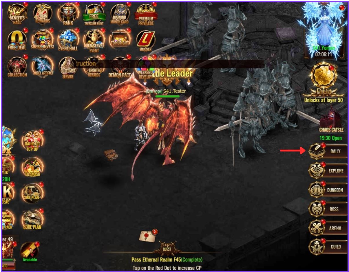 The first dungeon you will experience is the Demon Tower. Numerous divine points and treasure tickets are waiting for you.