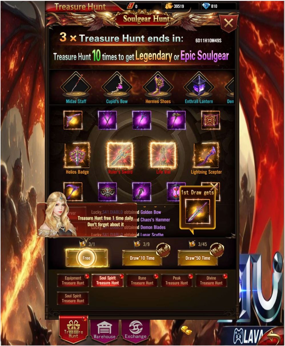 With the treasure hunt system, you will have the chance to obtain a variety of equipment, attribute-enhancing items, weapons, and rare magical artifacts. Have fun exploring!